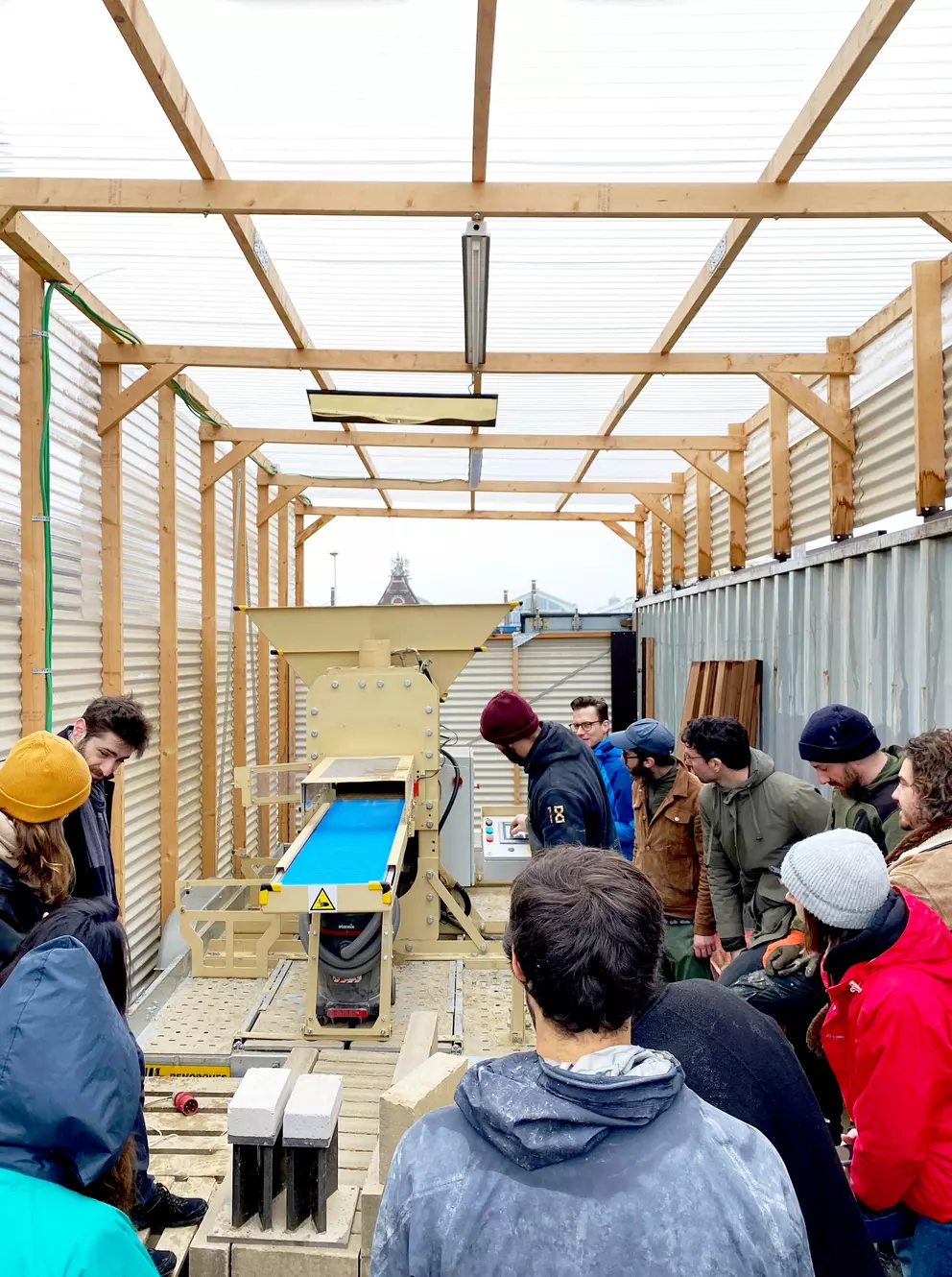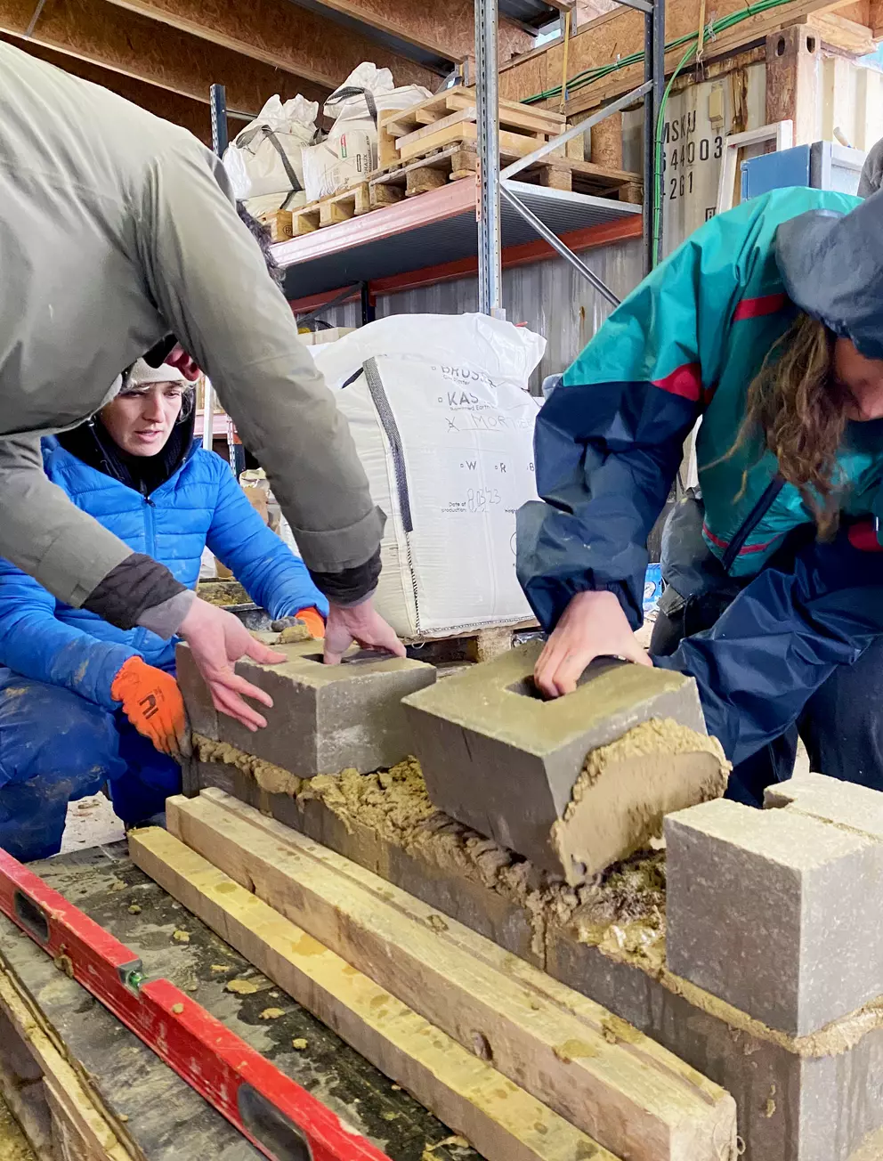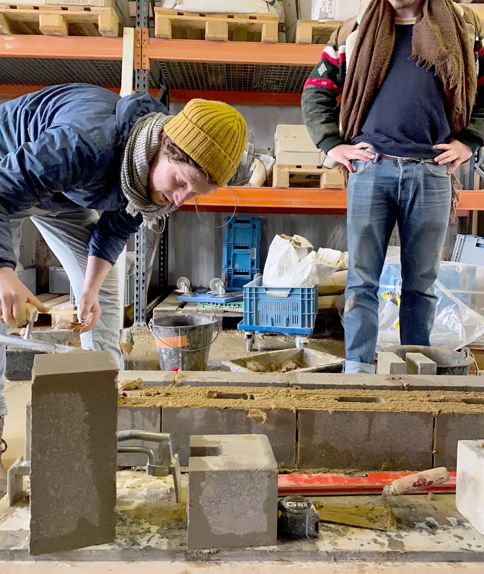 Practically we produce a compressed earth blocks together and learn how to mason with it. The end-goal is a hands-on understanding of the potential of earth bricks, through the construction of 1:1 wall set-ups. Different type of earth block, earth mortars are used to see a range of application opportunities.